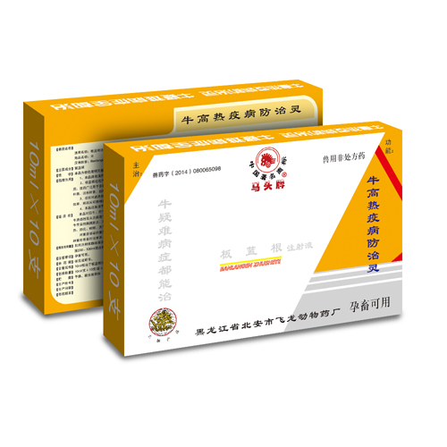 | 【适 应 症】 | 本品对奶牛、肉牛、役牛,各种原因引发的流行性、高热性疫病、感染性疫病都有很好治疗效果。该药对牛流行热病毒引发的牛流行热病、牛卡他热病毒引发的牛卡他热病、牛溃疡性乳头炎病毒引发的牛溃疡性乳头炎病、牛丘疹性口炎病毒引发的牛丘疹性口炎病等病毒性疫病有很好的疗效。对牛流感杆菌引发的流行性感冒病、丝状支原体引发的牛传染性胸膜肺炎、巴氏杆菌引发的大叶性肺炎、由产气荚膜梭菌引发的牛A型产气荚膜梭菌毒素中毒症病、由链球菌、白色念珠菌、葡萄球菌、肺炎球菌等病原菌引发的高热、肺炎、咳嗽、天气高温引发的哮喘、外伤感染、蜂窝织炎等细菌感染性疾病也都有很好的疗效。对大肠杆菌、痢疾杆菌引发的肠道感染也有效果。 对重度感染的重危患畜,配合我厂生产的注射用头孢噻呋钠、或氨苄西林钠分组静脉滴注,可产生强大的协同作用,可提高疗效20倍。采用这个联合用药的方剂,可提高各种重危患畜的治愈率。 |
