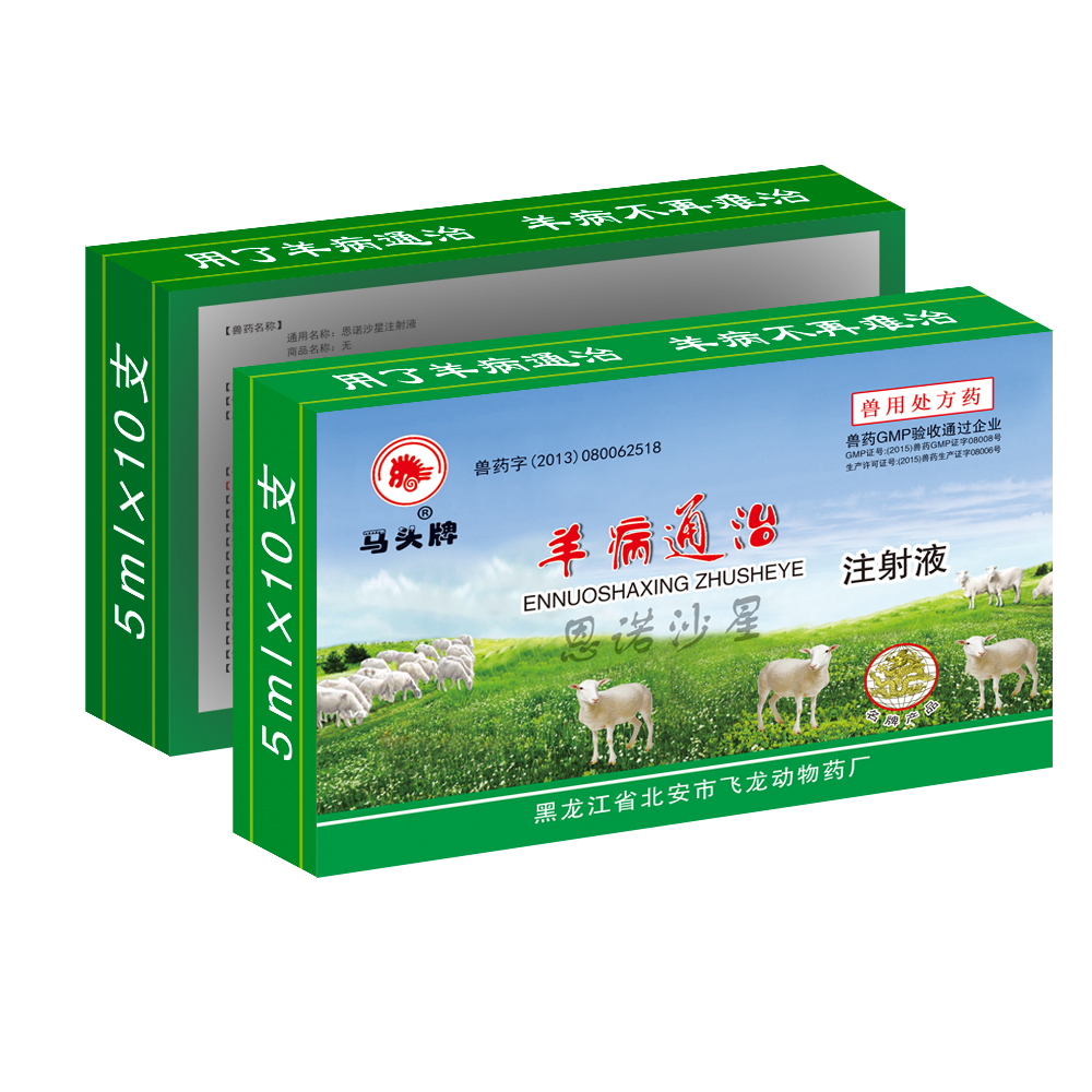 | 【用法与用量】 | 肌肉注射或原液静脉推注或和5%葡萄糖注射液混合静脉滴注(和葡萄糖注射液混合后应立即滴注,存放时间不可超过40分钟): 治疗量:成年羊每公斤体重0.08~0.15ml,羔羊每公斤体重0.1~0.2ml;一日1-2次,连用2-3天,对重症患羊可连用4-5天。预防量:发病羊群中、假定健康羊成年羊每公斤体重0.05~0.08ml,羔羊每公斤体重0.07~0.1ml。如静脉滴注建议用5%葡萄糖注射液200~500ml混合稀释缓慢滴注(用量按患畜大小而定)。 |