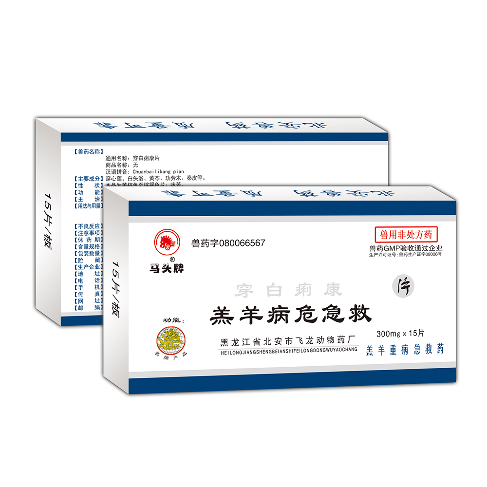 | 【适 应 症】 | 本品对羔羊梭菌性痢疾、羔羊白痢、羔羊黑痢、羔羊血痢、羔羊野兔热病、丹毒丝菌性多关节炎病、羔羊溃疡性口炎、羔羊球虫病、羔羊隐孢子虫病都有很好的疗效。以上各种疾病主要临床表现为:羔羊精神萎靡、不吃奶、腹壁紧张、触摸有痛感,继而发生粥状或水样腹泻,排泄物初呈黄色以后变为黄棕色或棕色,严重病例因脱水眼球下陷、肛门失禁,粪便带血,甚至全为血液,粘膜发紫、口流泡沫状唾液。出现败血症时羔羊发烧40°以上,呼吸急促、感染肺炎、胸膜肺炎时,呼吸困难、喘。出现神经症状,说明已继发脑膜炎。羔羊发生 “白肌病” 时,四肢疼痛、站立困难、站立时四肢拘谨,肌肉震颤、有明显的四肢肌肉疼痛症状。 以上各种疾病,是牧区羔羊的多发疾病,死亡率很高。在缺医少药的牧区,如不及时预防服药,会爆发以上羔羊疾病,死亡率极高。给牧民造成巨大的经济损失。有效地预防以上疾病的发生,保羔、救羔、提高羔羊的成活率,是兽药企业义不容辞的责任。我厂生产的“羔羊病危急救片”是预防和治疗羔羊以上疾病的首选特效药。预防以上疾病的发生并不难,但必须在羔羊出生后3-6小时,立即服该药一片,每天一次。连服4-6天,就可有效避免以上疾病的发生。对没有进行预防给药已发病的羔羊,急救时每次服2片,12小时1次(1天2次),连服4-5天即可治愈。 领先之处:本品是针对羔羊易发、多发以上各种传染病研制的高效、特效羔羊专用药。该药具有预防、杜绝以上传染病发生特异性效果。 |
