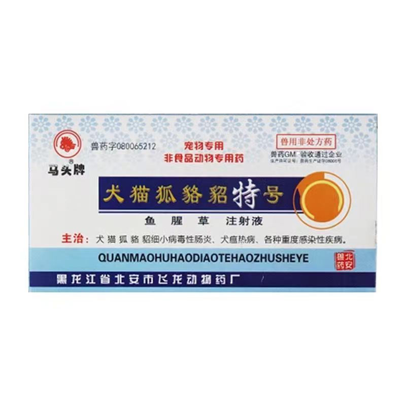 | 【用法与用量】 | 肌肉、皮下或静脉注射:一次量,犬、猫、狐、貉、貂,每1kg体重0.2~0.3ml。一月以内的新生幼畜,用量按正常量减半用药。 |