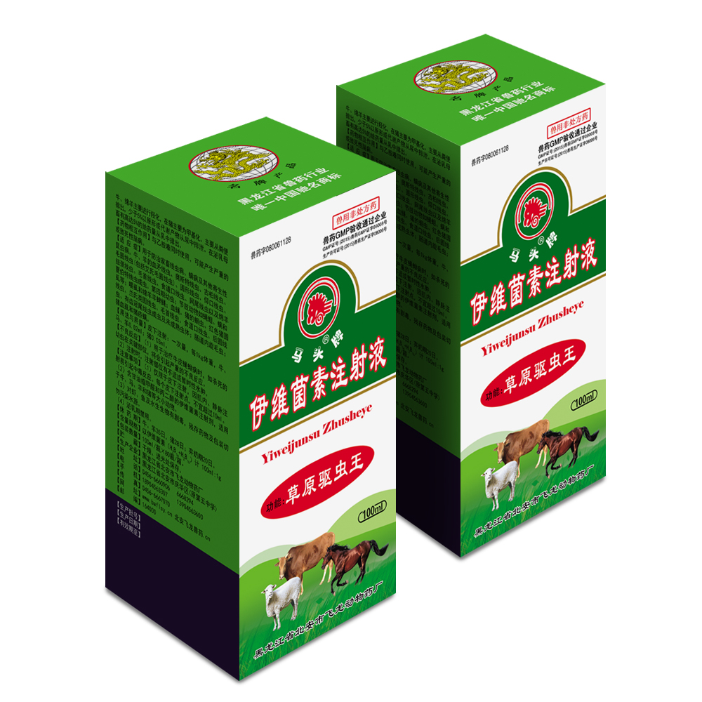 药效学  伊维菌素对体内外寄生虫主要是体内线虫和节肢动物具有良好的驱杀作用。其驱虫作用机理在于促进突触前神经元释放r-氨基丁酸(GABA),从而打开GABA介导的氯离子通道。伊维菌素对无脊椎动物神经和肌肉细胞位于GABA介导位点附近的谷氨酸介导的氯离子通道也具有选择性和高亲和力,从而干扰神经肌肉间的信号传递,使虫体松弛麻痹,导致虫体死亡或被排出体外。线虫的抑制性中间神经元和兴奋性运动神经元是其作用部位,而节肢动物的作用部位是神经肌肉接头。对牛、羊的血矛线虫、奥斯特线虫、古柏线虫、毛圆线虫(包括艾氏毛圆线虫)、圆形线虫、仰口线虫、细颈线虫、毛首线虫、食道口线虫、网尾线虫以及绵羊夏伯特线虫成虫、第四期幼虫驱除率97%~100%。对节肢动物亦很有效,如蝇蛆、螨和虱等。对嚼虱和绵羊羊蜱蝇疗效稍差。伊维菌素对蜱以及粪便中繁殖的蝇也极有效,药物虽不能立即使蜱死亡,但能影响摄食、蜕皮和产卵,从而降低生殖能力。对血蝇的作用相似。对猪的蛔虫、红色猪圆线虫、兰氏类圆线虫、毛首线虫、食道口线虫、后圆线虫、有齿冠尾线虫成虫及未成熟虫体驱除率达94%~100%,对肠道内旋毛虫(肌肉内旋毛虫无效)也极有效,对猪血虱和猪疥螨也有良好控制作用。对吸虫和绦虫无效。