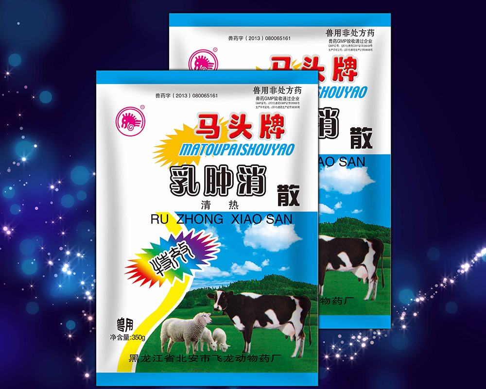 | 【主 治】 | 本品对奶牛、奶羊、母猪等动物急、慢性乳腺炎有很好的治疗效果。对出血性乳腺炎具有抗菌、止血的双重功效。该药对急性乳腺炎所致的高烧、乳房肿胀、疼痛反应很重的患畜,有消肿、退热、止痛、促进炎性产物吸收,恢复腺泡泌乳的效果。对慢性乳腺炎有控制和扼制乳腺萎缩、肉变的良好效果。同时它还能激活衰老乳腺细胞,活化腺泡的泌乳功能。 |