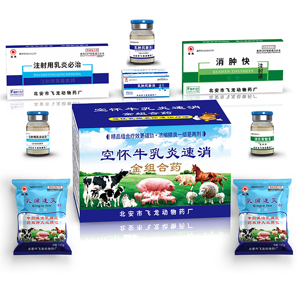 2、“消肿快注射液”,该药是中药抗乳腺炎有效的中药注射剂,该药和“注射用乳炎必治”两药混合同时应用,可产生很强的协同增效、抗乳腺炎病原菌作用。