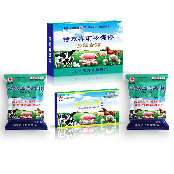 体重200-300kg中型动物,口服“速效止泻止痢粉”半袋;同时肌肉注射或用5%葡萄糖注射液500ml静脉滴注“痢立停注射液”10ml×3支。